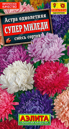 Смесь сортов низких, компактных игольчатых астр раннего цветения. Куст высотой 15-25 см, широкий и крепкий, с хорошим ветвлением. Соцветия густомахровые, d 6-8 см. Обильное цветение начинается на 2-3 недели раньше, чем у основной массы сортов. Смесь идеально подходит для контейнерного выращивания на балконах. Рекомендуется для оформления цветников открытого грунта – клумб, бордюров, рабаток.