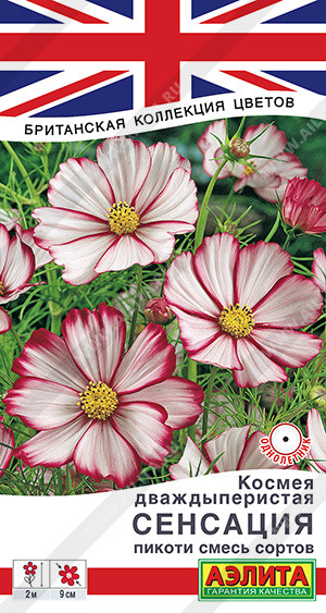 Великолепная космея с крупными соцветиями d 7-9 см. Растения образуют густые и пышные кусты высотой до 2 м. Традиционно эта неприхотливая культура выделяется среди всего многообразия садовых летников необыкновенно яркими и нежными перистыми листьями. Пик цветения приходится на август. Окраска «пикоти*» выглядит свежо и незаурядно. Сорт украсит любой цветник, подходит для срезки в букеты. Космею можно посеять вдоль забора или вокруг построек, т.к. плотный и высокий занавес зелени поможет скрыть отдельные недостатки сада. А также использовать в качестве кулис, зонирующих участок.
