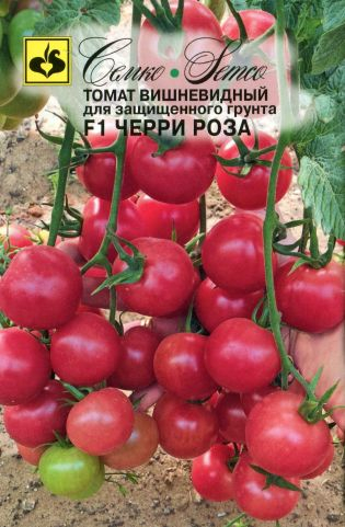 Томат Черри Роза F1 - ранний индетерминантный розовоплодный кистевой гибрид. Растение сильнооблиственное, формируют в один или два стебля. От всходов до начала созревания 90–95 дней. Первое соцветие формируется над 9–11 листом. Помидоры округлой формы, розовой окраски без зеленого пятна у плодоножки, двухкамерные, плотные, массой 25–35 граммов. На одной кисти созревает в среднем 15–20 плодов. Вкусовые и товарные качества отличные, сохраняются без изменения потребительских свойств в течение 25–30 дней. Томат Черри Роза F1 устойчив к вирусу томатной мозаики (ToMV), относительно устойчив к фитофторозу (Pi). Используется для потребления в свежем виде и цельноплодного консервирования. Рекомендуется для выращивания в защищенном грунте или открытом грунте с подвязкой к опоре. Схема посадки 70х40 см. Урожайность 13–15 кг/м.
