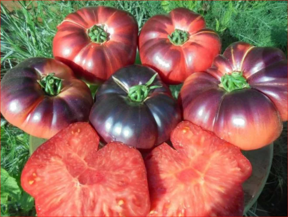 Среднеспелый крупноплодный биф-томат с плодами экзотичного цвета. Растение индетерминантное. Плод округло-плоский, мясистый, средней массой 250 г. Кожура насыщенного сине-фиолетового цвета содержит массу полезных антиоксидантов - антоцианов. Мякоть розовая, сочная, великолепного вкуса, с оптимальным соотношением сахаров и кислот. Отлично подходит для приготовления салатов и бутербродов. Выращивают в теплицах или открытом грунте как коловую культуру.