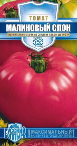 Ранний (105-110 дней) сорт салатного назначения для открытого грунта и пленочных укрытий. Растение детерминантное, раскидистое, высотой 70-90 см. Требует умеренного пасынкования. Плоды плоскоокруглые, малиновые, массой 200-400 (первые – до 500-600) г. Ценность сорта: крупноплодность, выравненность, отличные вкусовые и ценные диетические качества. Рекомендуется для употребления в свежем виде и приготовления различных салатов.