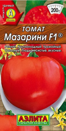 Ранний крупноплодный детерминантный гибрид. От всходов до первого сбора 95-105 дней. Для пленочных теплиц в средней полосе и для открытого грунта в южных регионах. Высота растений 110-130 см. Томаты* мясистые, массой 160-200 г. Вкусовые качества отличные. Урожайность до 15 кг/м2. Товарность гибрида высокая, 97% плодов –ровные, стандартные. Гибрид устойчив к ВТМ и черной бактериальной пятнистости.