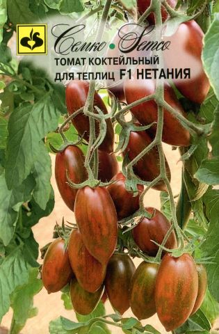 От всходов до созревания помидоров 90-95 дней. Растение генеративного типа, с укороченными междоузлиями. Первое соцветие закладывается над 7-9 листом. В кисти формируется 12-16 помидоров. Томаты сливовидно-цилиндрические, массой 45-50 г, очень плотные , темно-красного цвета с коричневыми полосками вдоль плода, чашелистики раскрытые. Вкус и товарность отличные в течении круглогодичного выращивания. Стрессоустойчивый, отличается хорошей завязываемостью томатов при высоких температурах. Томат Нетания F1 устойчив к вирусам томатной мозаики (TоMV), желтого скручивания листьев (TYLCV), вертициллезу (Va, Vd), фузариозу (Fol 1–2), галловым нематодам (Ma, Mi). Уборка кистями или отдельными плодами.Схема посадки 70х40 см. Урожайность свыше 22 кг/м. Выращивание в открытом грунте с обязательной подвязкой к опоре.