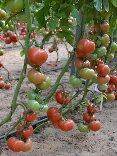 Томат Стреза F1 - среднеранний, крупноплодный, индетерминантный гибрид для защищенного грунта. От полных всходов до созревания 94–115 дней. Растение компактное, междоузлия средние. Первое соцветие закладывается над 8–9-м листом, последующие – через 2–3 листа. Плодоножка с сочленением. В кисти формируется 5–7 плодов. Плод плоскоокруглый, среднеребристый, блестящий, массой 180–200 г и более. Окраска незрелого плода зеленая с темным пятном у плодоножки, зрелого – красная. Вкусовые качества отличные. Выход товарной продукции 95–97%. Транспортабельность хорошая. Устойчив к вирусу томатной мозаики (ToMV), кладоспориозу (Ff), фузариозу (Fol 1–2), вертициллезу (Va, Vd) и к галловым нематодам (Mi, Ma). Используется для потребления в свежем виде. Рекомендуется для выращивания в зимне-весеннем и весенне-летнем оборотах. Схема посадки 70х40 см. Урожайность свыше 25 кг/м.