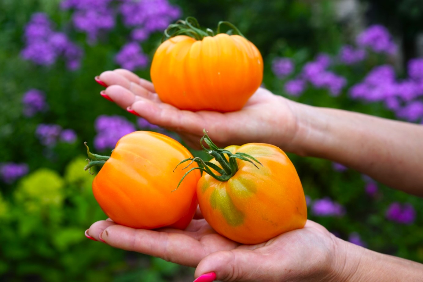 Индет, 2,0 м. Среднеспелый. Форма: выровненные сердца. Масса 200-350 грамм. Цвет жёлто-оранжевый. Мякоть мясистая, вкусная, с малым количеством семян.