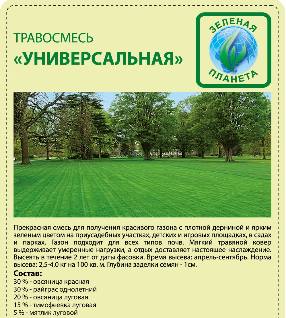 Травосмесь Универсальная эконом 10 кг /Зеленая планета