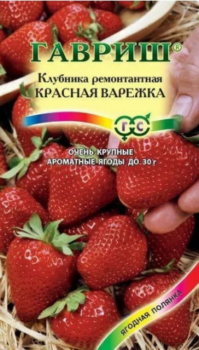 Клубника Красная варежка, или как ее еще называют, садовая земляника – культура, отличающаяся компактными плодами, которая в период завязывания плодов формирует свыше десятка больших цветков, обладающих белым окрасом. Кустики сорта формируют немного усиков, поэтому зачастую возделываются посевным способом.