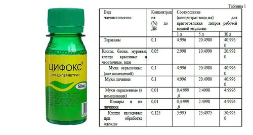 Цифокс — это инсектицид нового поколения, используемый профессиональными дезинсекторами. Эффективное средство в борьбе с клопами и другими домашними паразитами. В основу средства входит инсектицидное вещество циперметрин 25% концентрации, дополнительно входят отдушка, эмульгатор, растворитель. Это концентрат эмульсии, который разводится водой. Представляет собой прозрачную жидкость с желтоватым оттенком, и мало приятным запахом.