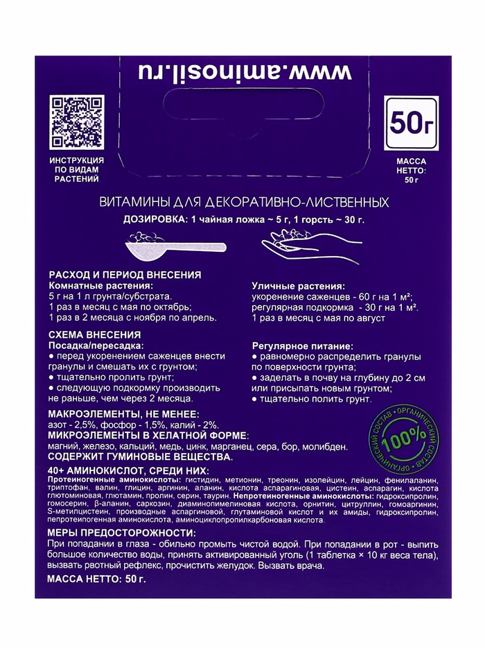 * Экономичный расход: Упаковка 50 г идеально подходит для любителей комнатных растений и обеспечивает рациональное использование без переплат.