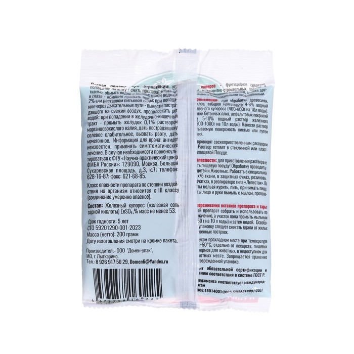 Антисептик Железный Купорос «Домен» от плесени, гнили, пакет 200 г