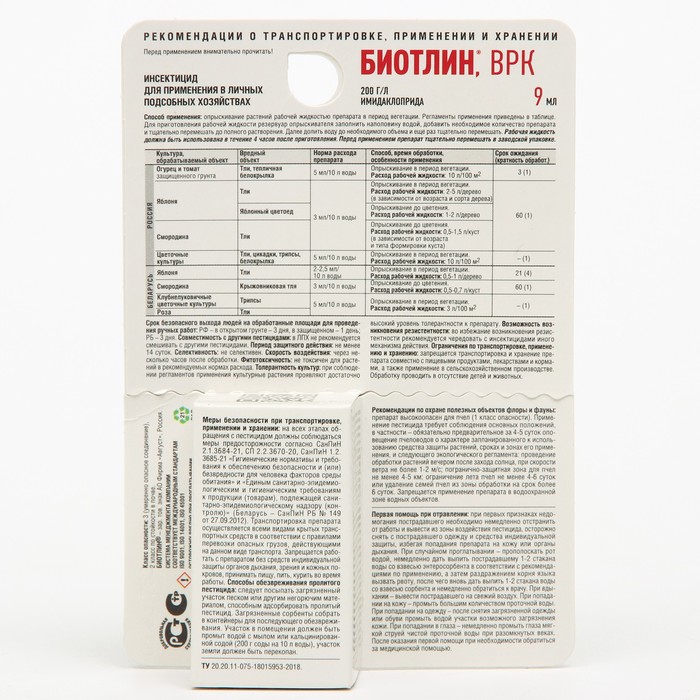 Средство от тли на всех культурах Биотлин, 9 мл