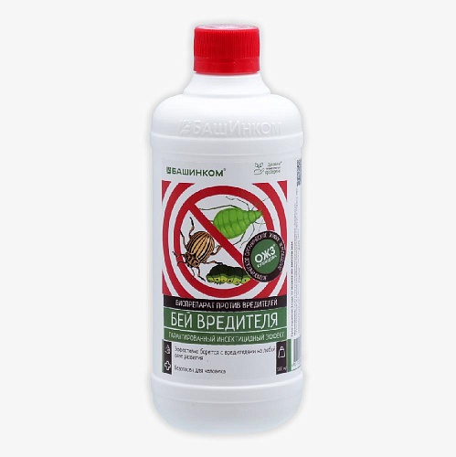 Башинком Бей вредителя– биопрепарат пролонгированного действия с гарантированным инсектицидным эффектом, против насекомых и клещей: тли, плодожорки, колорадского жука, шелкопряда, крестоцветной блошки, трипсов, плодовой и капустной моли, паутинного клеща. Начинает действовать уже на стадии яйца. Препарат проникает внутрь не только через пищеварительный тракт, но и через покровы вредителей, вызывая их паралич и дальнейшую гибель. При контакте с водой – разлагается в течение 48 часов.Состав: гликоли растительного происхождения, консорциум природных микроорганизмов.Преимущества:• безопасен для человека;• эффективен против широкого спектра насекомых;• эффективно борется с вредителями на любой стадии развития.
