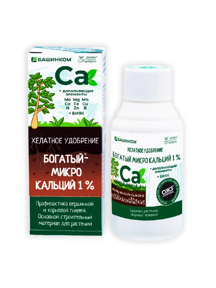 БашИнком Богатый-Микро Кальций+дополняющие элементы– экологичное зеленое микроудобрение кальция на основе природоподобного биоразлагаемого комплексообразователя (хелатора) БИЯК. Это органическое вещество, состоящее из полезной для растений и человека янтарной кислоты, аминокислот и белка. Профилактика вершинной и корневой гнилей. Основной строительный материал для растений.Преимущества:• усиливает корнеобразование;• повышает урожайность и количество плодов;• повышает устойчивость к засухе, холоду и вредителям.