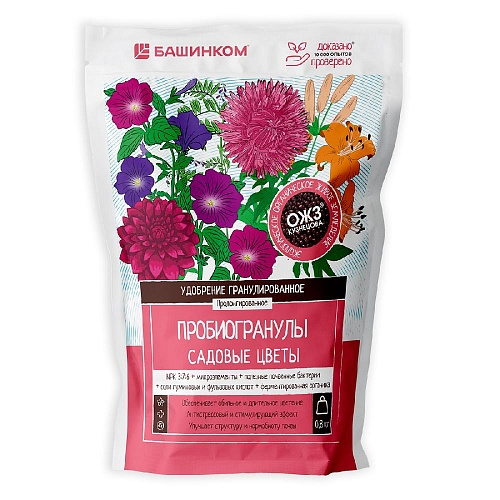БашИнком Пробиогранулы для хвойных растений– мягкое органоминеральное удобрение пролонгированного действия для личных подсобных хозяйств. Каждая гранула содержит в идеально подобранном соотношении макро- и микроэлементы (в легкодоступной хелатной форме), необходимые хвойным растениям. Удобрение повышает иммунитет растений и устойчивость к всевозможным стрессам, укрепляет корневую систему, ускоряет рост и развитие растений, обеспечивает рост новых побегов и почек, сохраняет насыщенность цвета иголок и предотвращает их опадание, восстанавливает нормобиоту почвы и хвою после выгорания.Преимущества:• улучшает декоративные качества;• восстанавливает структуру почвы;• повышает приживаемость при посадке;• обеспечивает дополнительным питанием.