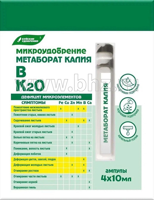 БХЗ, микроудобрение Метаборат калия (4 амп х 10мл) /6 шт Буй