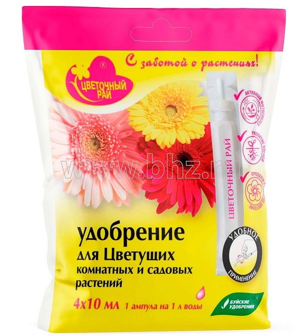 БХЗ, удобрение Цветочный рай для цветущих комнатных и садовых растений (4 амп х 10мл) /6 шт Буй