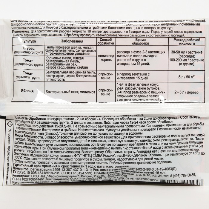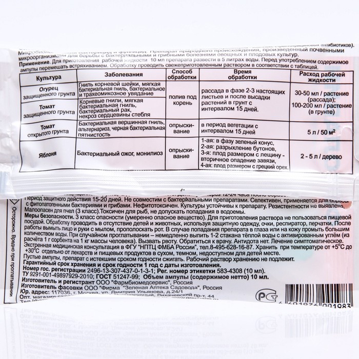 Область применения: От бактериальных и грибных болезней