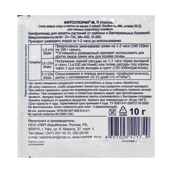 БИО фунгицид «Фитоспорин-М», от бактериальных и грибных болезней томатов,10 г