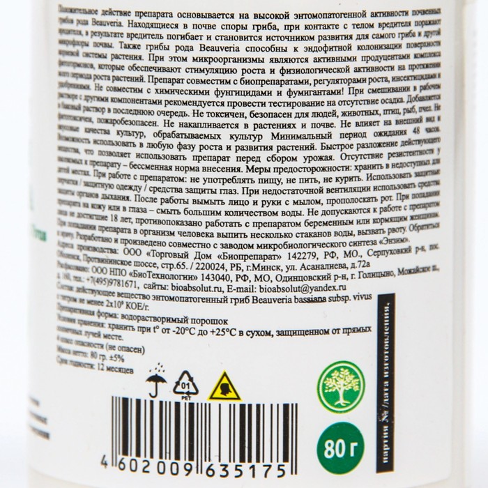 БИО инсектицид «Боверия Бассиана», почвенный, от комплекса вредителей, 80 г