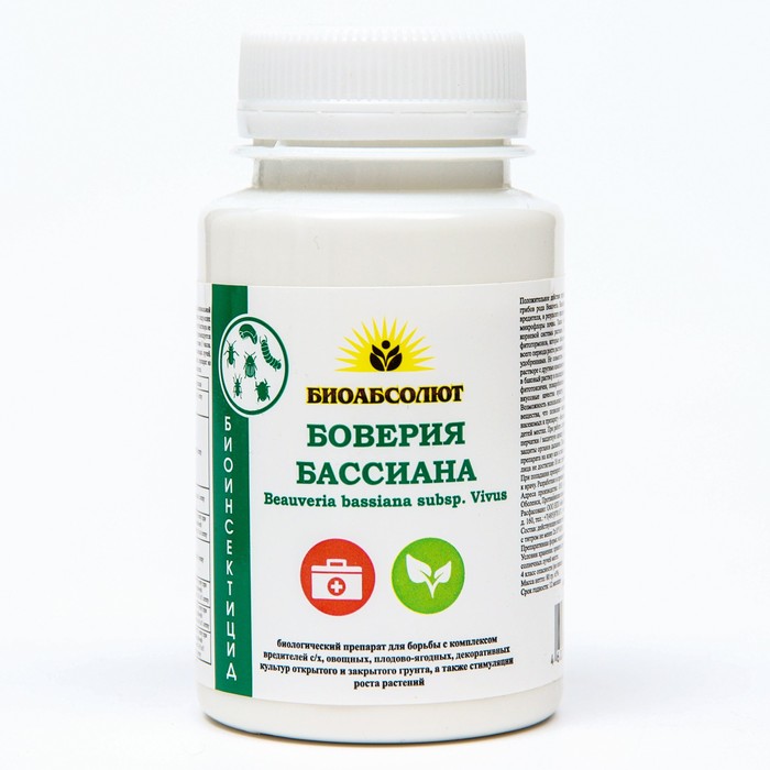 Beauveriabassiana - инсектицид нового поколения, предназначенный для биологического контроля вредителей сельскохозяйственных, плодово-ягодных и овощных культур открытого и закрытого грунта, а также стимуляции роста растений.