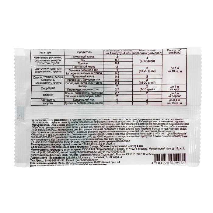 БИО инсектицид «Фитоверм» от насекомых-вредителей, ампула 4 мл