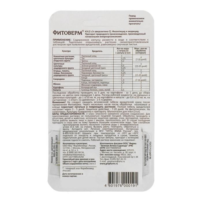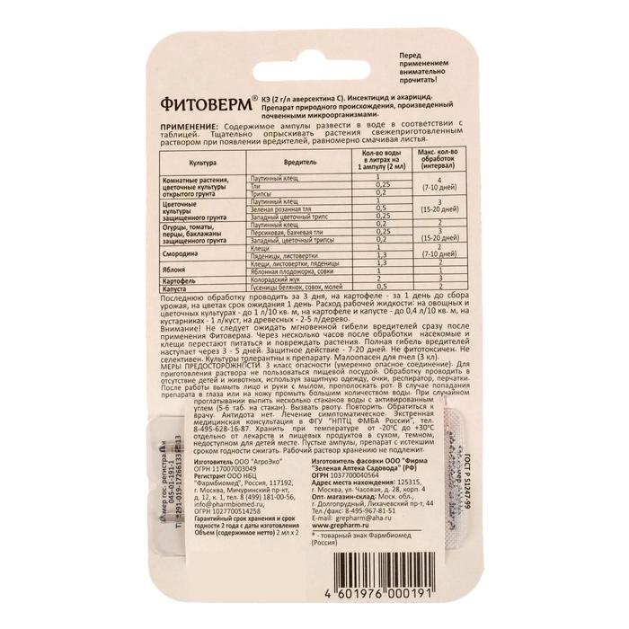БИО инсектицид «Фитоверм» от насекомых-вредителей, пластик 2×2 мл