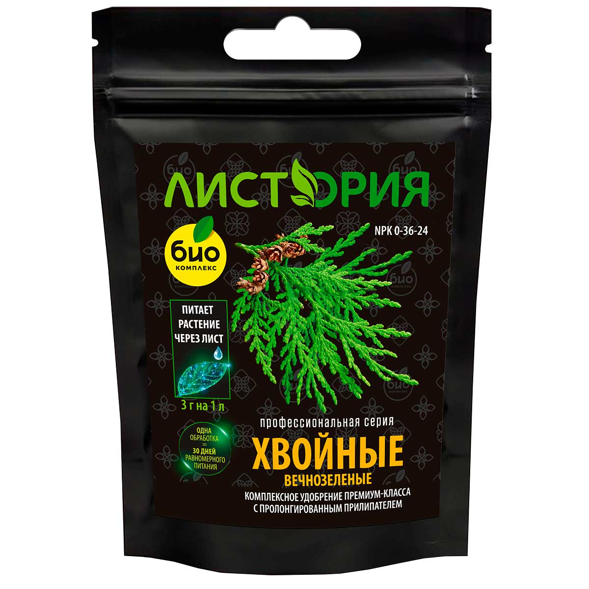 Профессиональное минеральное удобрение премиум-класса с пролонгированным прилипателем для ЛИСТОВОЙ подкормки хвойных культур в течение всего сезона.