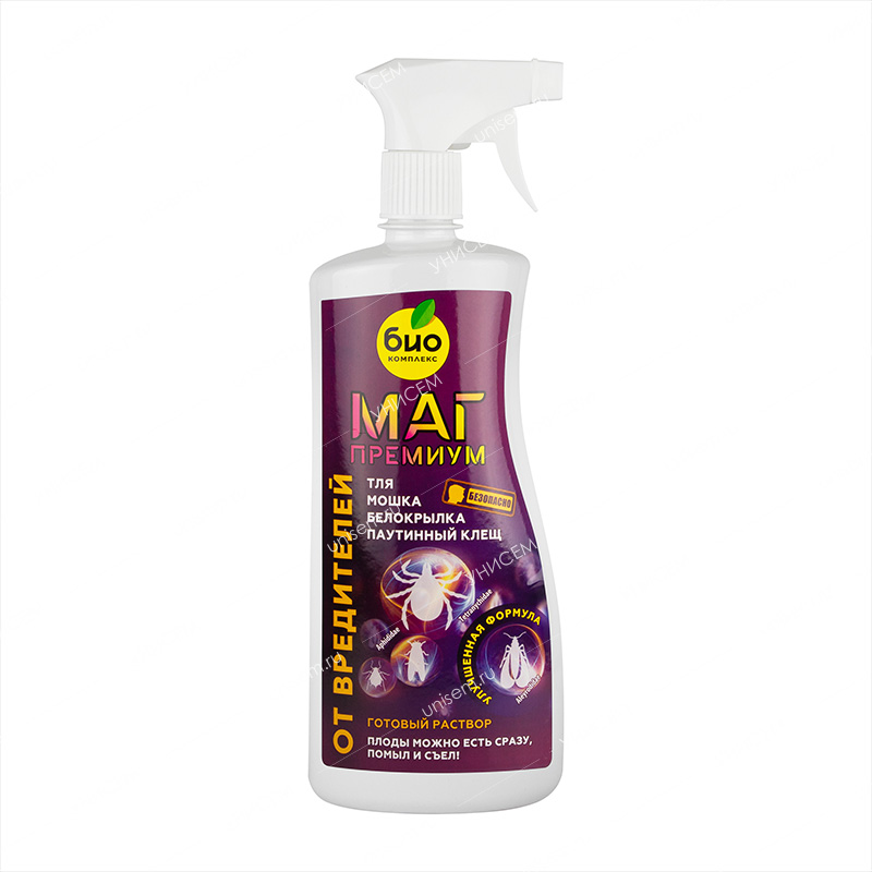 БИО-комплекс МАГ премиум –экологически безопасное средство от вредителей от паутинного клеща, белокрылки, мошки, тли. Можно обрабатывать по готовым к сбору плодам. Средство с новой улучшенной формулой бережно заботится о ваших растениях. Срок хранения – 24 месяца. Хранить в тёмном месте при температуре +5°С +25°С.Состав: вода, органические активные компоненты, эфирное масло гвоздики, консервант.Преимущества:• подходит для любых растений;• безопасен для пчёл, человека и животных;• плоды можно есть сразу после обработки;• не токсичен.