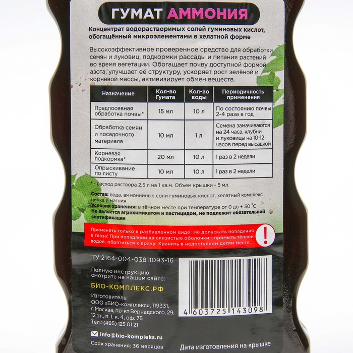 Удобрение Гумат Аммония БИО-комплекс, 0,5 л