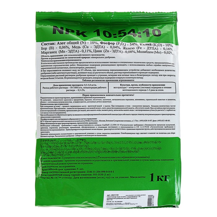 Удобрение минеральное ПЛАНТАФИД 10-54-10 NPK с микроэлементами, 1 кг