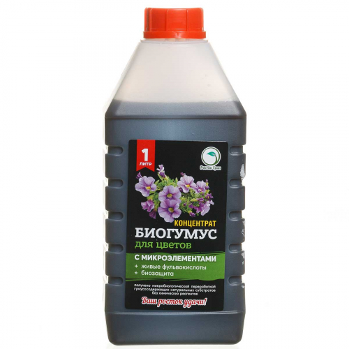 Биогумус для Для комнатных и уличных цветов - это уникальный, не имеющий аналогов природный комплекс БИОГУМУС + ЖИВЫЕ ФУЛЬВОКИСЛОТЫ + МИКРОЭЛЕМЕНТЫ с функциями биоудобрения, биостимулятора и биофунгицида. Живые фульвокислоты Бурый уголь и сапропель в виде смеси перерабатываются специально подобранными полезными почвенными микроорганизмами без химических реагентов (уникальная запатентованная российская технология) На 100% органический препарат. Усилены антистрессовые и иммуностимулирующие свойства. Повышенное содержание К (до 9,4%) и Mg (до 1,4%) Компоненты даются в определенной оптимальной пропорции, благодаря чему его можно использовать для предпосадочного биопротравливания семян и луковиц и корневой системы рассады, а также для борьбы с болезнями растений и повышения их иммунитета и стрессоустойчивости. Применение биогумуса в виде биопротравливания, полива и опрыскивания усиливает энергию и скорость прорастания семян и луковиц, выживаемость рассады, рост и развитие корневой системы и надземной части растений,а также вызывает обильное и длительное цветение Рекомендуется комплексное использование препарата - семена при проращивании замочить в рабочем растворе биогумуса (1 : 100), не более чем на 24 часа - клубни и луковицы замачивать в рабочем растворе биогумуса (1 : 100), не более 10 - 12 часов, перед высадкой в грунт - за 3 - 5 дней до высева семян / высадки клубней и луковиц - пролить подготовленный грунт рабочим раствором биогумуса (1 : 100) - в фазе двух настоящих листочков начинать поверхностные поливы почвы - один раз в 7 - 10 дней - рабочим раствором биогумуса (1 : 100) - 2 - 3 раза за время выращивания рассады рекомендуется проводить опрыскивание растений рабочим раствором биогумуса (1 : 50) - до цветения - после поверхностного полива почвы рабочим раствором биогумуса рекомендуется пролить почву водой - в бутылке при хранении допускается небольшой осадок - перед применением бутылку с биогумусом - взболтать - идеально подходит для органического земледелия