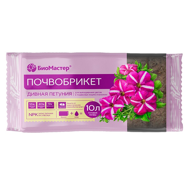 БиоМастер Почвобрикет ДИВНАЯ ПЕТУНИЯ (на 10 л) 740 гр. / 7 шт