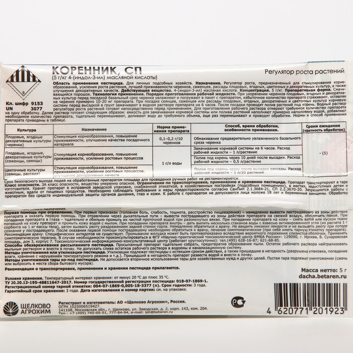Стимулятор корнеобразования «Коренник»,для всех растений, пакет, 5 г