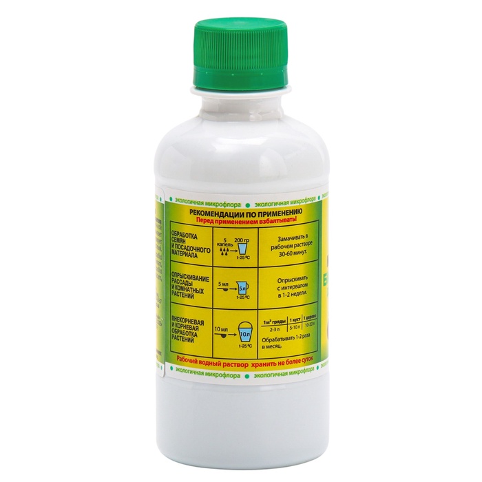 Для обработки семян перед посевом разведите содержимое бутылочки 1:1000 и замочите семена на 30-60 минут.