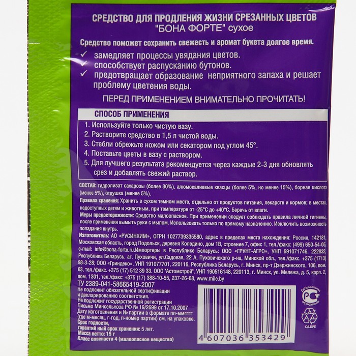 Средство для сохранения свежести срезанных цветов Бона Форте, пакетик, 15 г