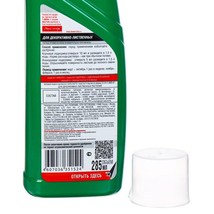 Удобрение для декоративных лиственных Bona Forte, флакон, 285 мл