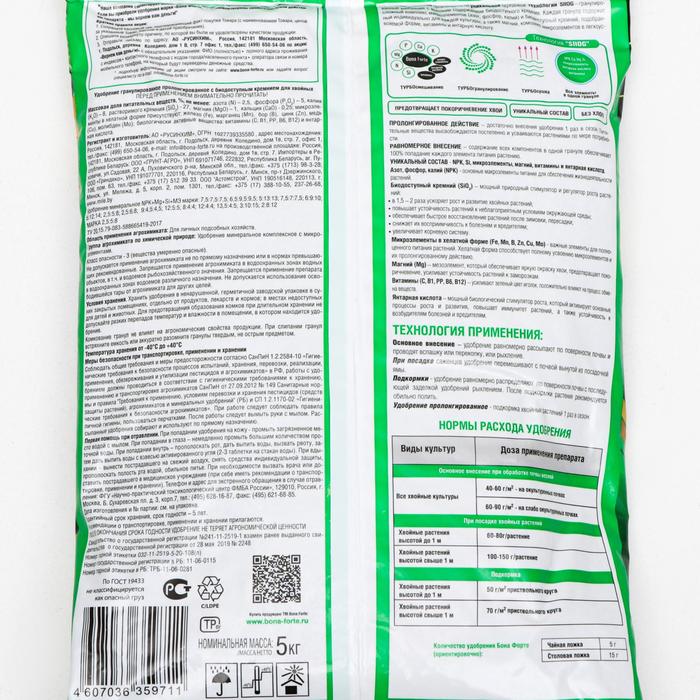 Удобрение Бона Форте весна-лето для Хвойных с кремнием, 5 кг