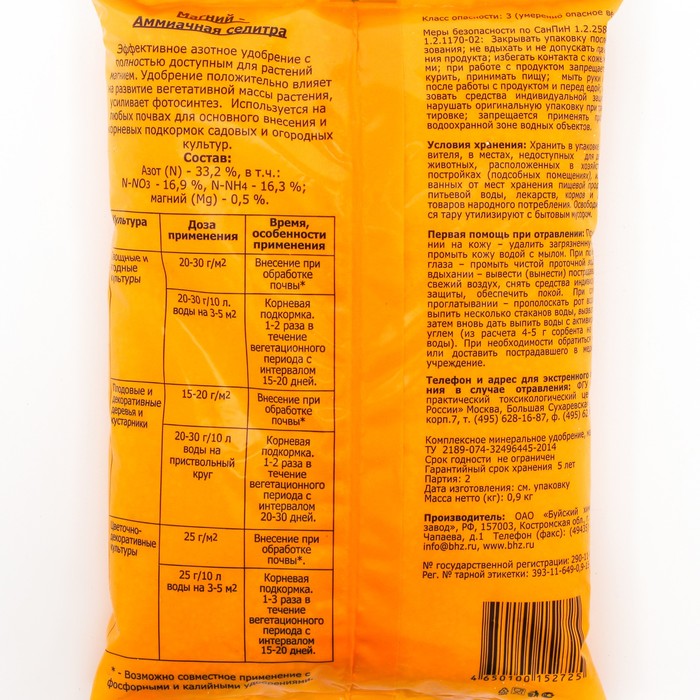 Удобрение минеральное «Буйские удобрения», магний-аммиачная селитра, 0.9 кг