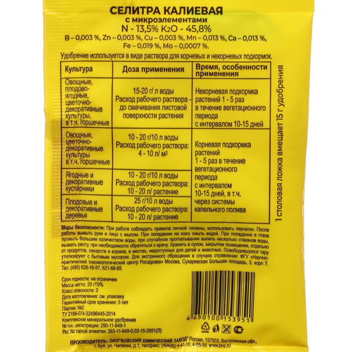 Удобрение минеральное Селитра калиевая с микроэлементами 20 г