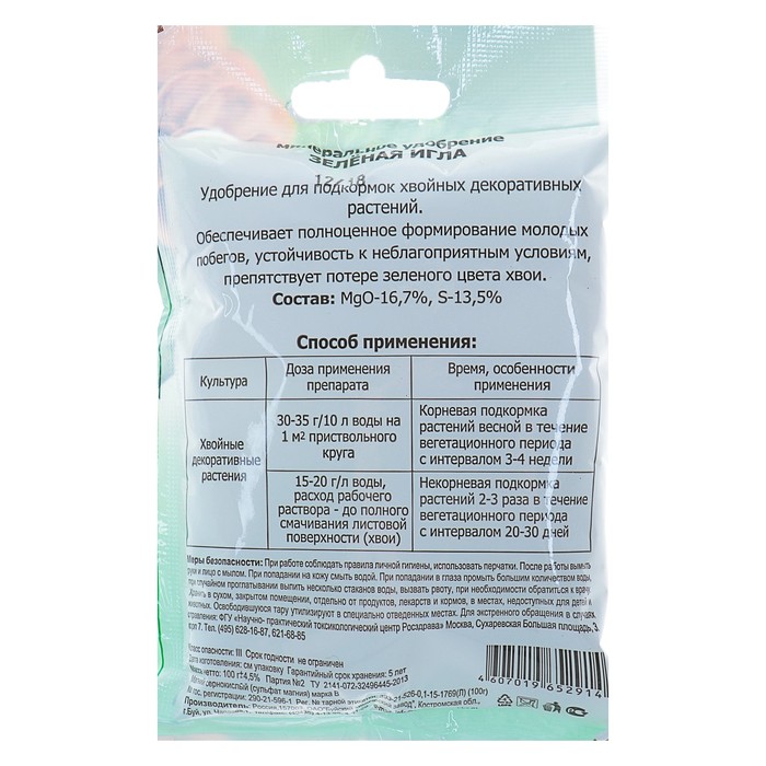 Удобрение минеральное "Зеленая игла" для хвойных, 100 г