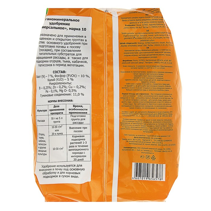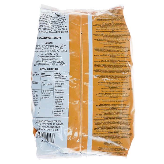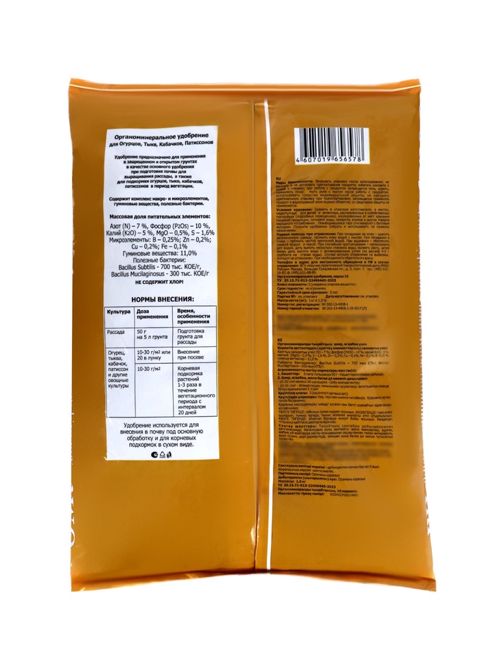 Назначение: служит в качестве основного удобрения, которое обеспечивает длительное и полноценное питание огурцов, тыкв, кабачков, патиссонов. Применяется в период от рассады до плодоношения.