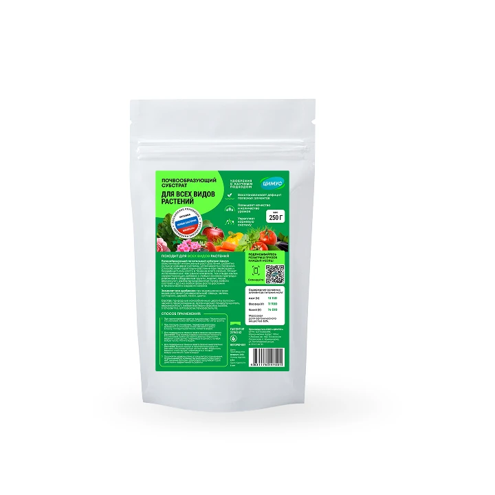 Цимус Универсальное– комплексное удобрение для всех видов растений. Удобрение содержит полный комплекс питательных веществ для здорового роста на всех стадиях вегетации, обеспечивает интенсивный рост и развитие корневой системы, повышает иммунитет растений, способствует прорастанию семян и луковиц, стимулирует цветение. В Цимусе содержится 3 основных компонента: биогумус, живые бактерии и цеолит вулканический. Биогумус обеспечивает активный рост и цветение, наращивание корневой массы. Живые бактерии – защиту от болезней. Цеолит вулканический – мешает вымыванию полезных элементов.Преимущества:• 100% натуральный продукт;• подходит для выращивания всех культур;• обладает пролонгированным действием.