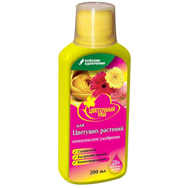 Специальное быстродействующее комплексное жидкое удобрение для питания цветущих комнатных и садовых растений.
