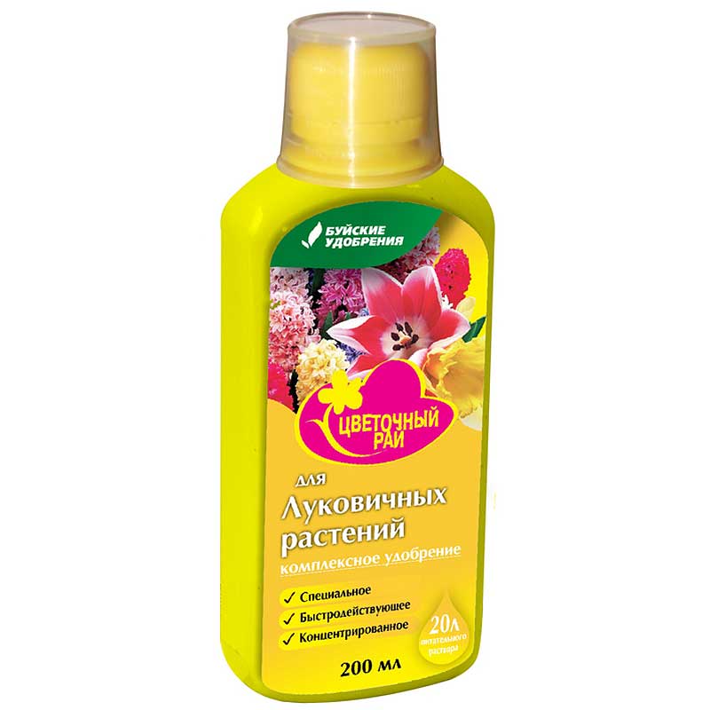 Специальное быстродействующее концентрированное комплексное жидкое удобрение для питания луковичных растений.