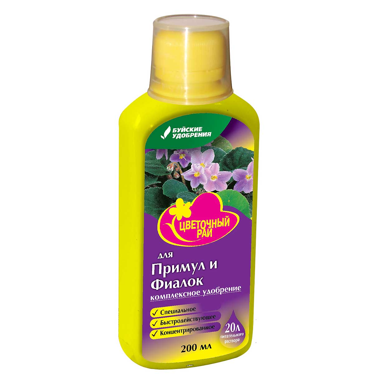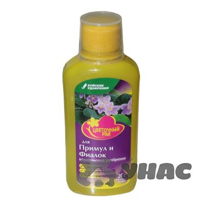 Специальное быстродействующее концентрированное комплексное жидкое удобрение для питания примул и фиалок.