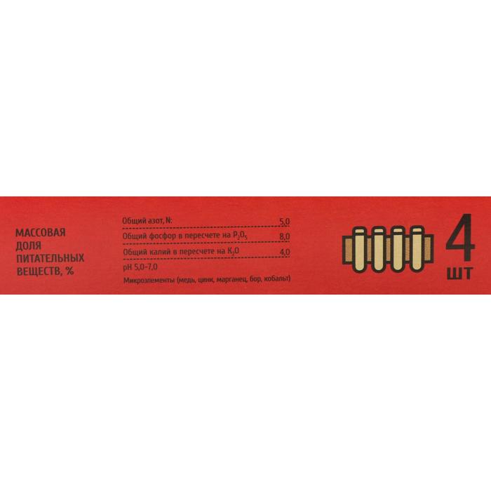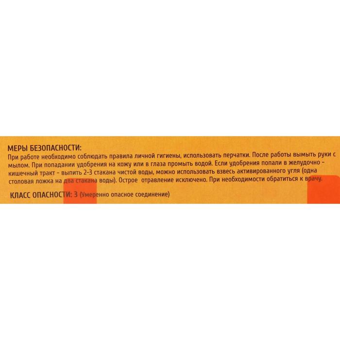 Массовая доля питательных веществ: общий азот, N - 5,0, общий фосфор в пересчете на Р2О5 - 8,0, общий калий в пересчете на К2О - 4,0, рН - 5,0-7,0.