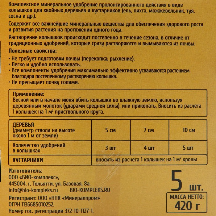 Комплексное минеральное удобрение пролонгированного действия в виде колышков для хвойных деревьев и кустарников