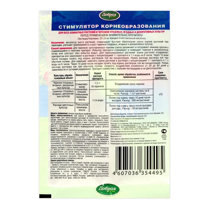 Средство для стимулирования корнеобразования всех комнатных растений и черенков плодовых, ягодных и декоративных культур.