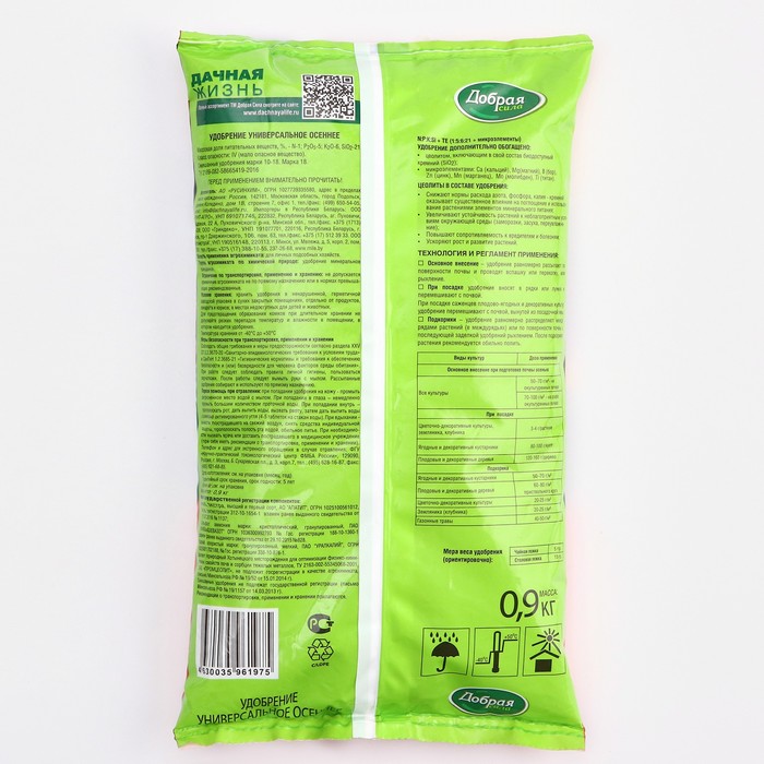 Удобрение сухое "Универсальное осеннее" Добрая Сила, пакет, 0,9 кг