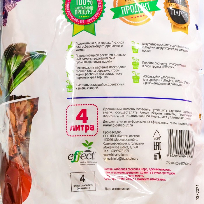 Грунт для орхидей Effect+ с дренажным камнем фр.10-30, 4 л.